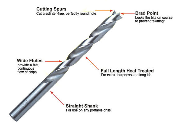 HSS Brad Point Wood Drill Bits for Wood with Bright Finished